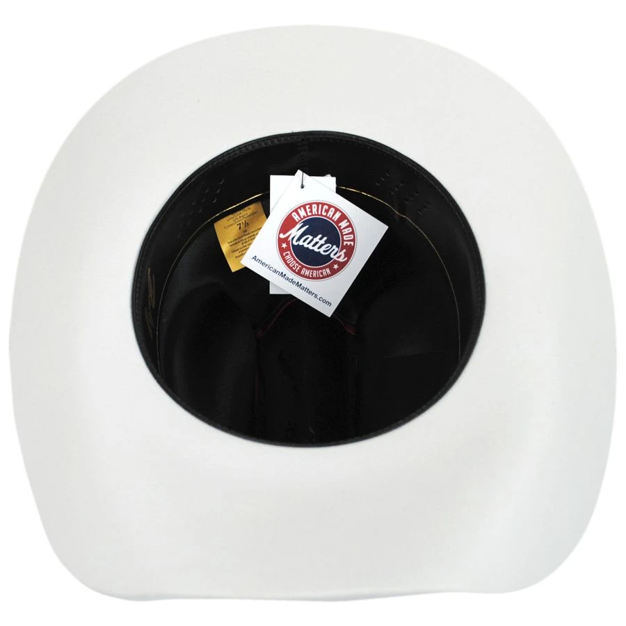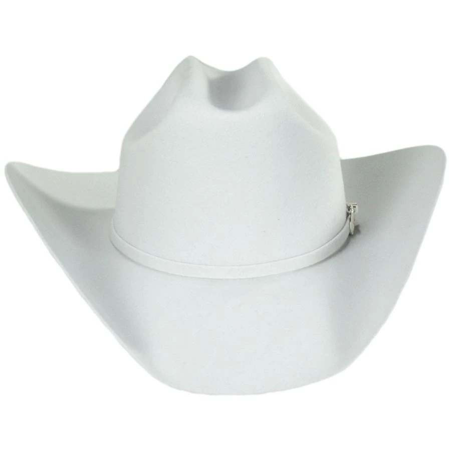 An excellent quality cattleman, the Lightning Wool and Angora Felt Cowboy Hat from Bailey is the classic cowboy hat. With its matching felt band and buckle, you too can be riding off into the sunset in the ultimate in American styling.
