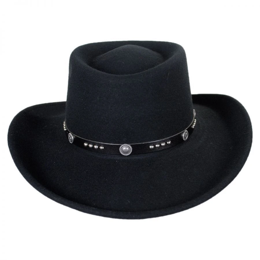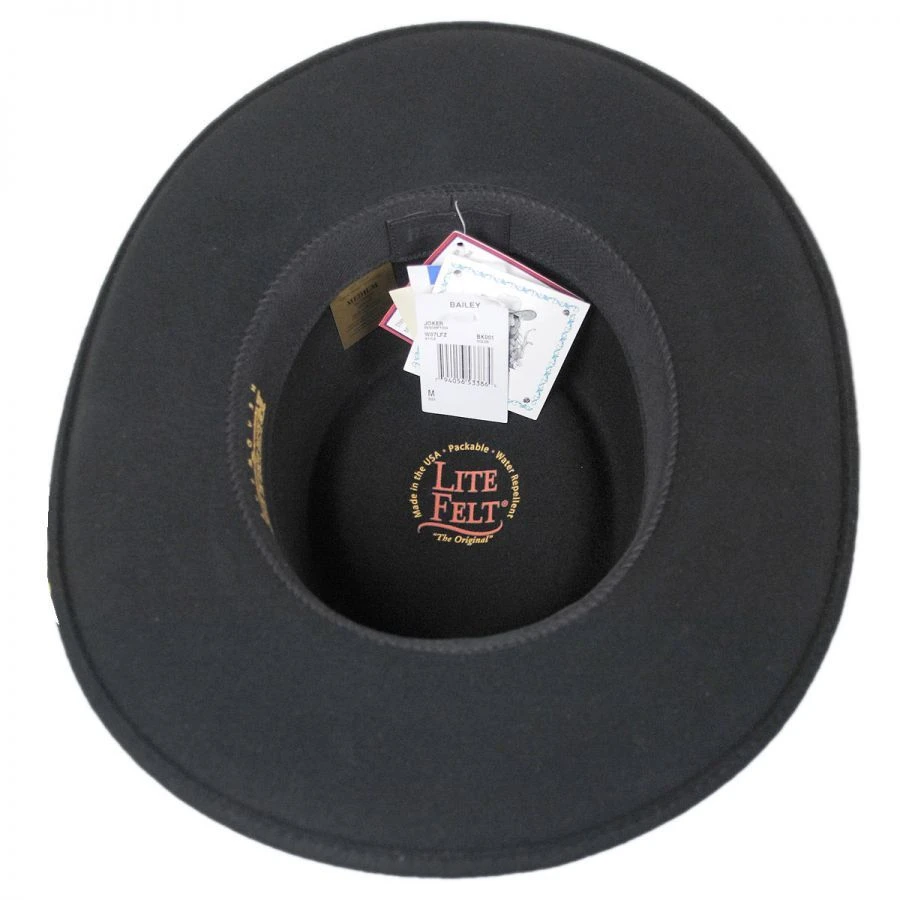 Introducing the Joker LiteFelt® Wool Gambler Western Hat by Renegade. This is a great wool gambler with a stylish studded leather hat band and curved brim. Made in the USA by expert craftsmen, the Joker features their exclusive wool LiteFelt® finish that makes this style both packable/crushable and water repellent. No stiff hats here! The Renegade Joker Western is for those seeking a bit more flexibility and functionality in their hats, buy yours today!