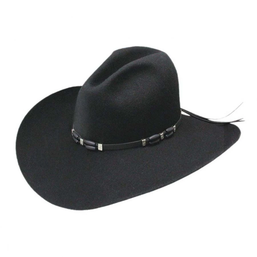 Want a part of the Resistol Wool Collection but don’t want a cattleman crown? Take a look at the Cisco Wool Felt Western Hat with a Gus crown to grab anyone’s attention.
