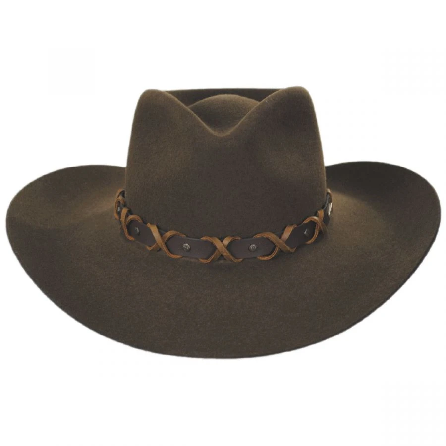 Named after the city in the movie Rio Lobo, Stetson’s newest contribution to their John Wayne collection, the John Wayne Blackthorne Wool Felt Western Hat. A stiff structured hat built to last, this western hat’s standout feature is the bronze-studded, leather-laced leather hat band. The Blackthorne is all style, down to the details with a smooth sweatband and custom satin lining. “Courage is being scared to death – but saddling up anyway.” – John Wayne