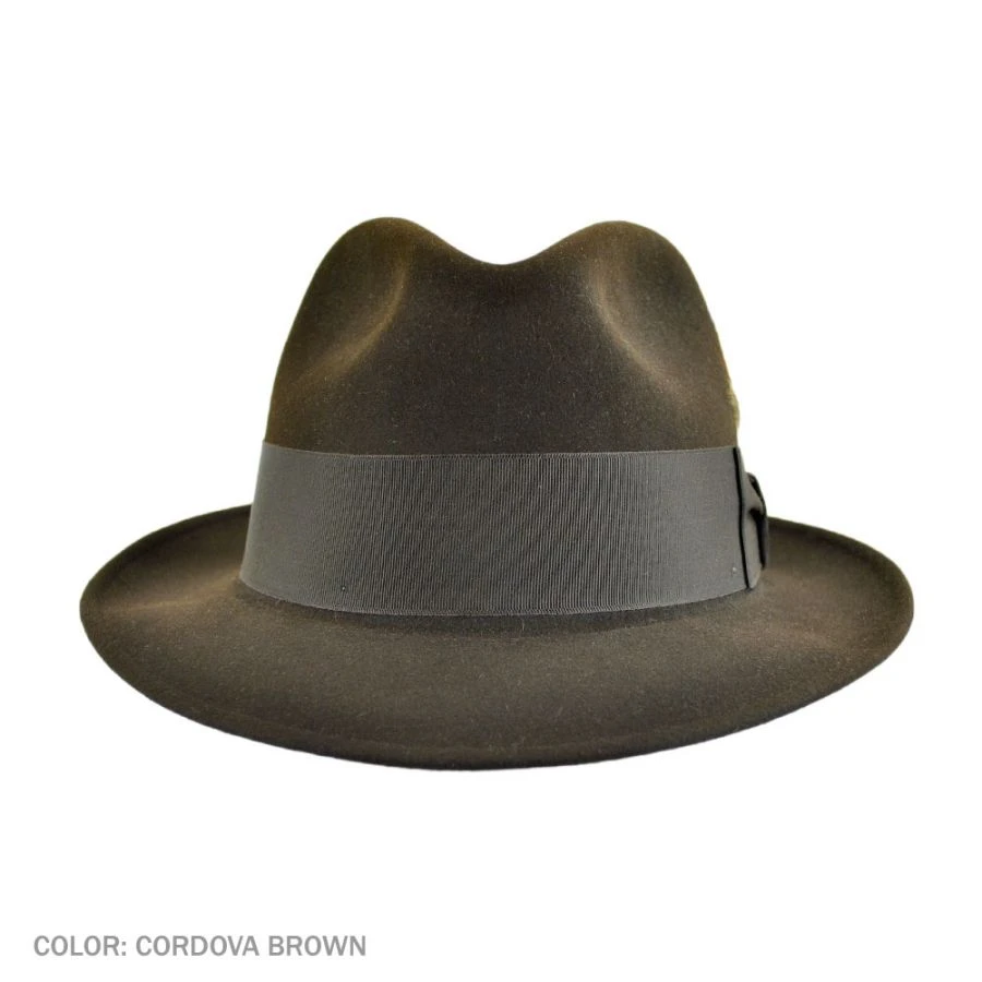 From Stetson’s Royal line comes the Saxon Fur Felt Fedora Hat – the best selling hat from the premiere American hat company. Made of premium soft finish fur felt, the Saxon features a classic pinch crown and traditional two-inch underwelt snap brim. Wear the brim snapped down for a timeless Old Hollywood look or keep it snapped up for a more modern twist.