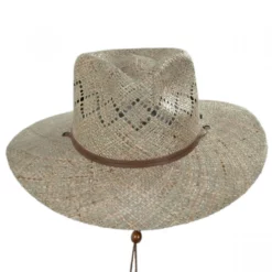 The Terrace Seagrass Straw Outback Hat from Stetson is a great hat for warm weather. The vented crown provides air circulation and the wide brim keeps the sun off your face. Leather chin cord with adjustable bead ensures the wind won’t blow your hat away when you’re out in the yard or on the beach.